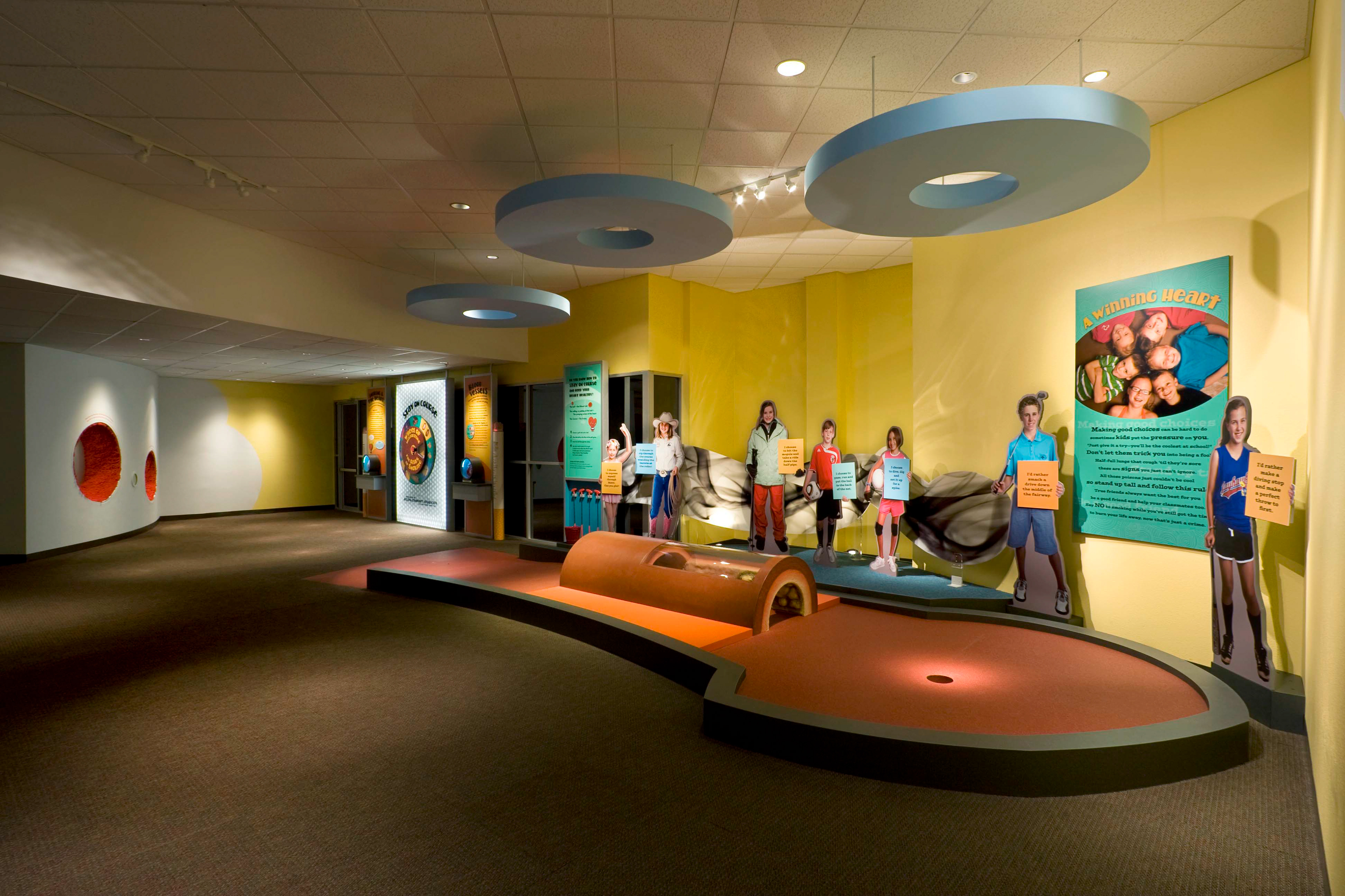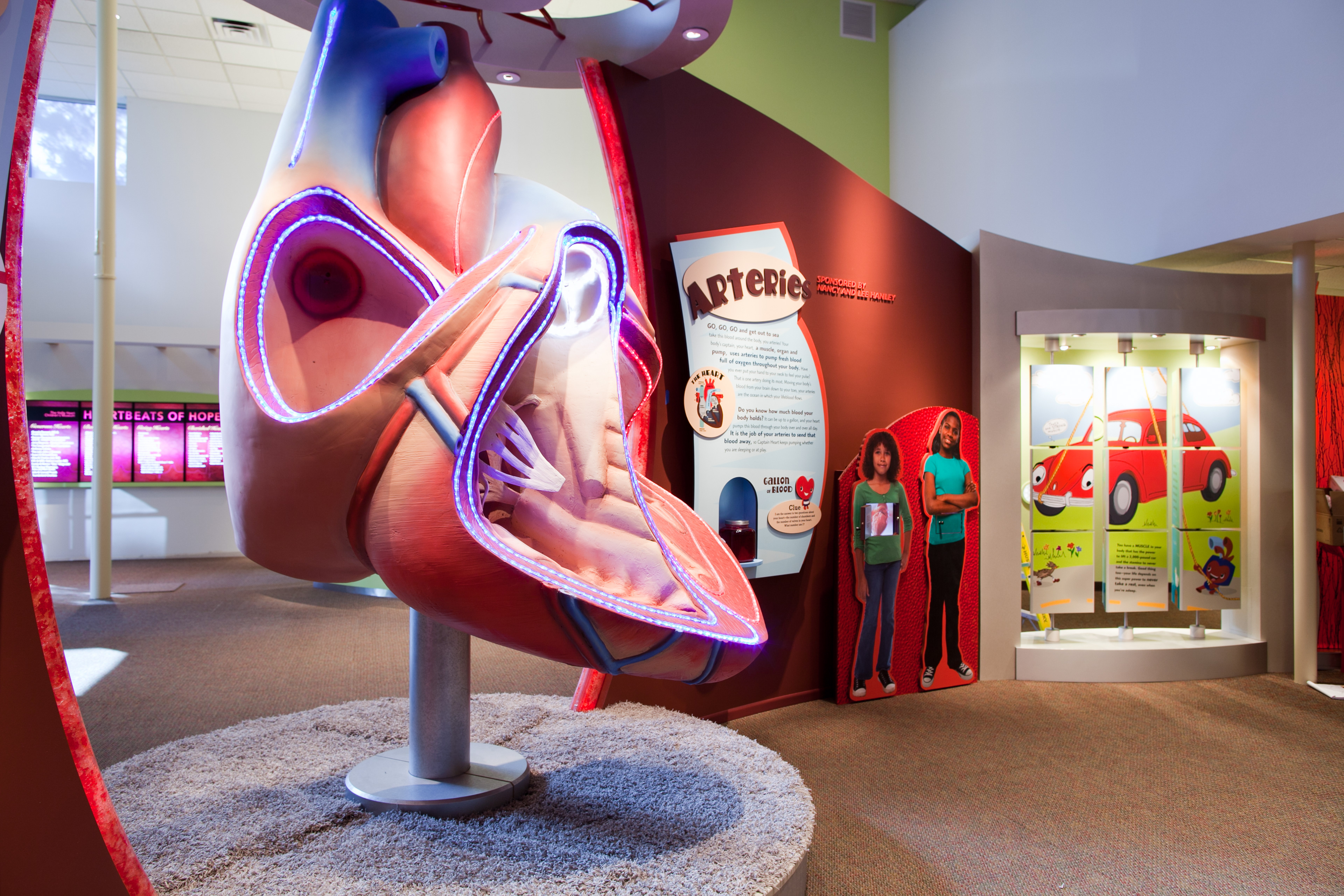 Under the direction of Gartner Design Co and Glyphics Design I helped design, brand, art direct & illustrate exhibits for a health museum for the American Heart Association.