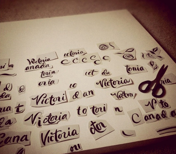 "Hand lettering the logo with brush and ink."