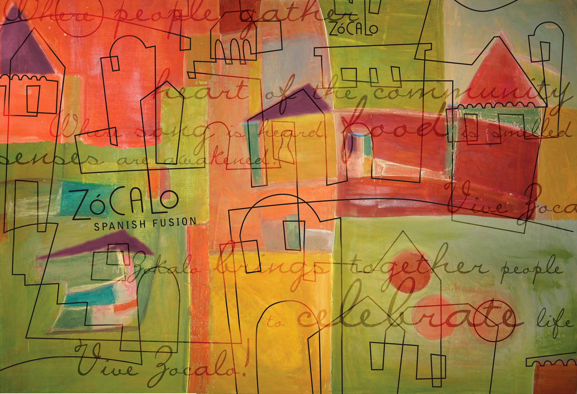 Logo and branding created under the guidance of Glyphics Design for a Spanish fusion restaurant in Arizona. The client requested a wall covering incorporating the logo and the feel and color of a Spanish zocalo.